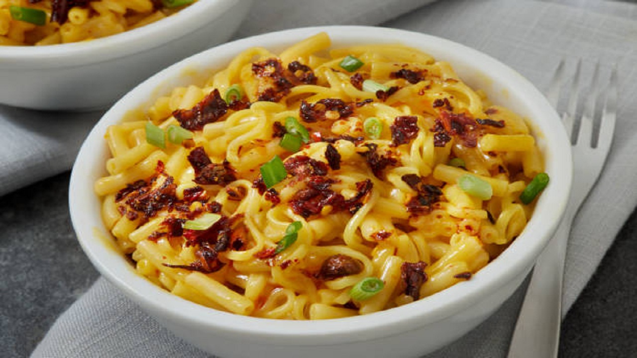Trending Mac and Cheese Ramen with Chili Crunch Oil. Boxed mac and Cheese and Instant Noodles